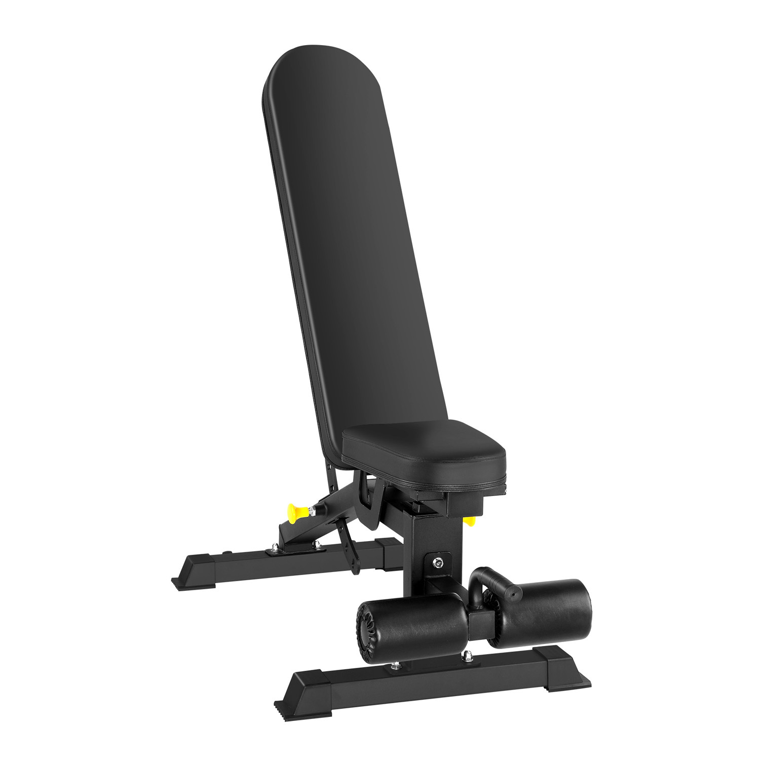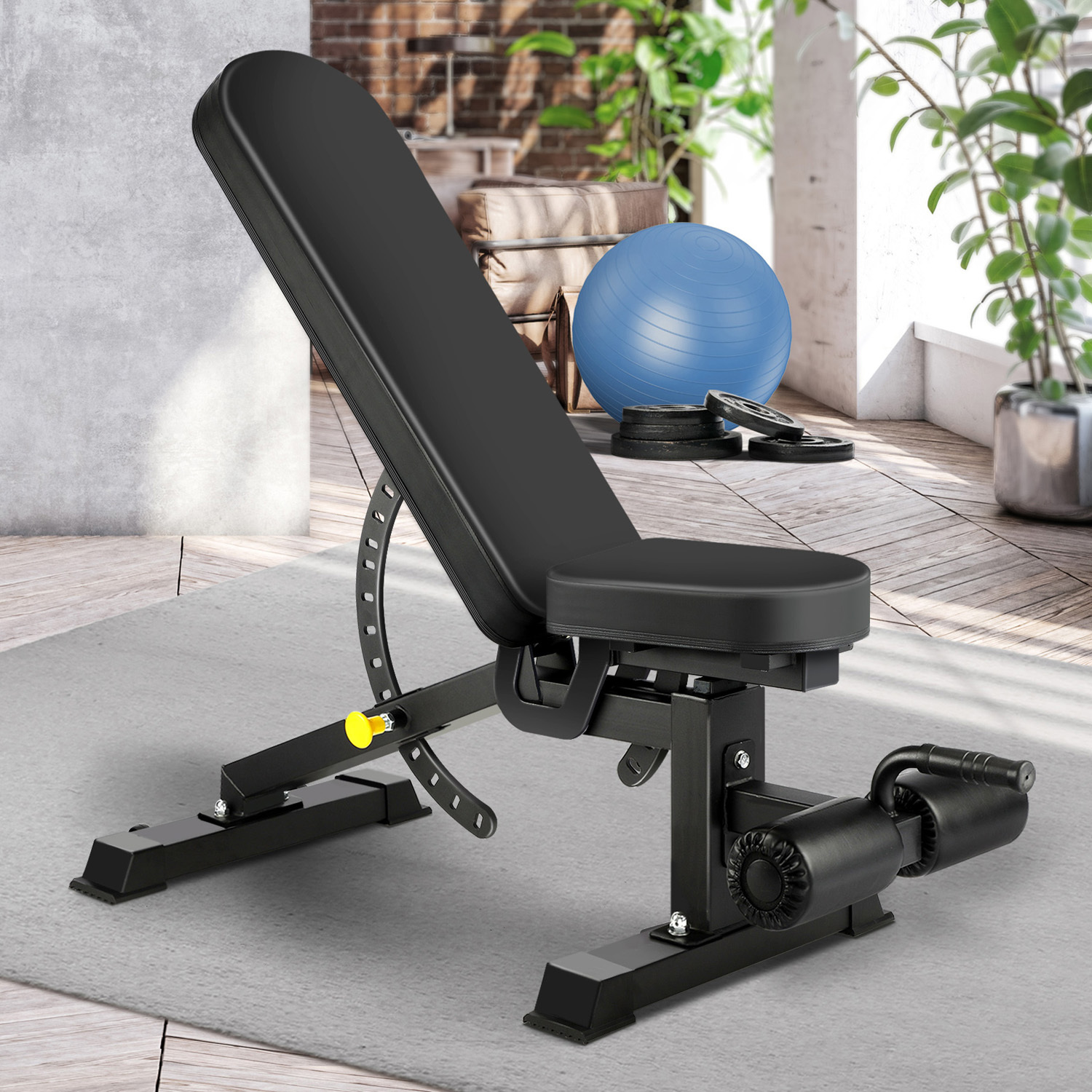 This weight bench contributes to a wide array of strength-training exercises, including incline/ flat/ decline dumbbell press, seated dumbbell press, chest flys, knee pull ins, dumbbell concentration curls, one-arm dumbbell row, sit ups and more. It is a great device at home or gym and can reach your workout aims for sure.
