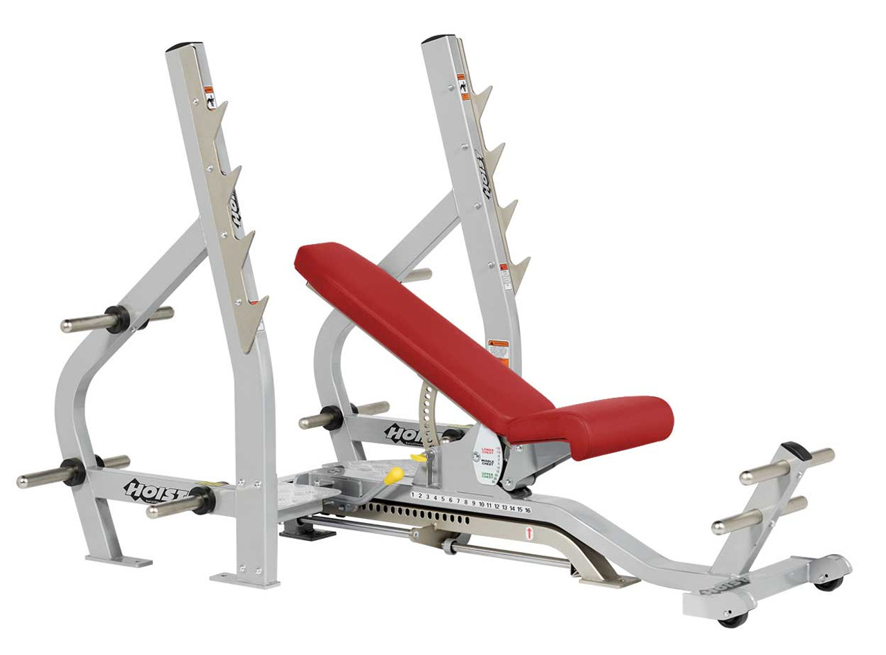 - Ten adjustable back pad positions from -15° to 30° in 5° increments to accommodate incline, flat and decline bench exercises