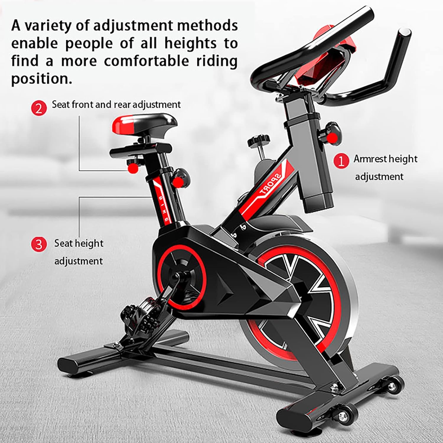 -Fully Adjustment Seat: Fully multi-ways seat adjustments of fitness bike, can easily move forward/back and up, down. The seat can be adjusted for height and proximity to handlebars in order to fit different height or arm length.