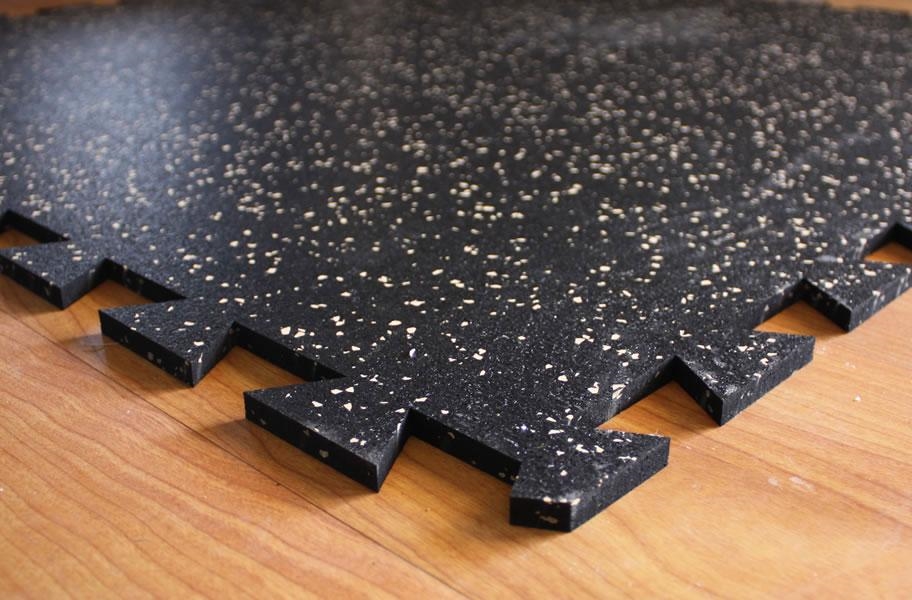 | Resilient. | Anti-fatigue qualities found naturally in rubber are further enhanced by a space age polymer binder used during manufacturing. Each roll is fabricated from thousands of rubber granules and offers superior underfoot comfort and resilience to cushion the shock from running, exercising, walking and standing. |