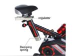This black and red S100 indoor exercise bike has been designed with ergonomics in mind. Each pedal features a toe cage so that your feet stay secure when you work out and both the handlebar and padded saddle seat can be adjusted for your personal comfort.